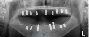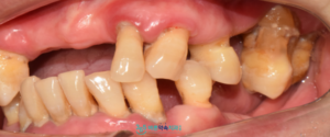잔존 치아들 모두 심한 잇몸 질환으로 인해