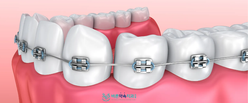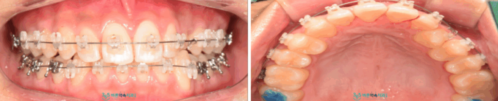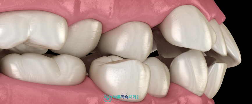 다른 치아가 틀어지고 삐뚤어진 상태로