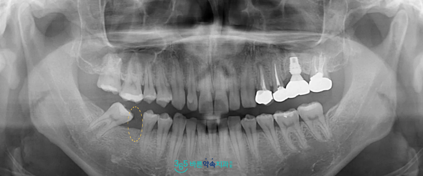 아래턱 오른쪽 두 번째 큰 어금니(#47)가