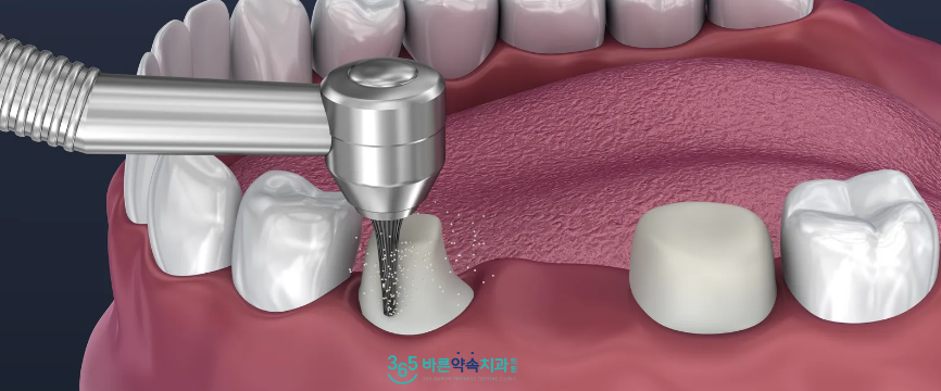 기울어진 치아와 솟구쳐 내려온 치아를 깎아